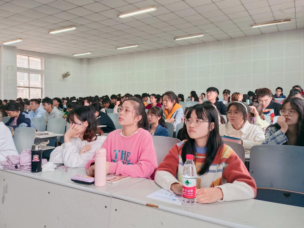 我院党委委员兼副院长袁星洁同志在教授以“马克思主义中国化两次历史性飞跃的理论成果及联系”为主题的党课时,以长津湖的故事为引,以我国近代有关思想觉醒的事件为例,强有力地论证了中国共产党领导的正确性,党的指导思想的科学性。他通过一系列的小故事,简要地为我们讲述了毛泽东思想和中国特色社会主义理论体系的形成过程,并讲解了它们间的两点联系:一是群众观点和群众路线的应用,二是解放思想,实事求是。在党课最后,他表示,作为一名青年,当国家愈发强大,我们便愈发要珍惜这样的局面,要努力为她发光发热,为她奉献我们的智慧和力量。