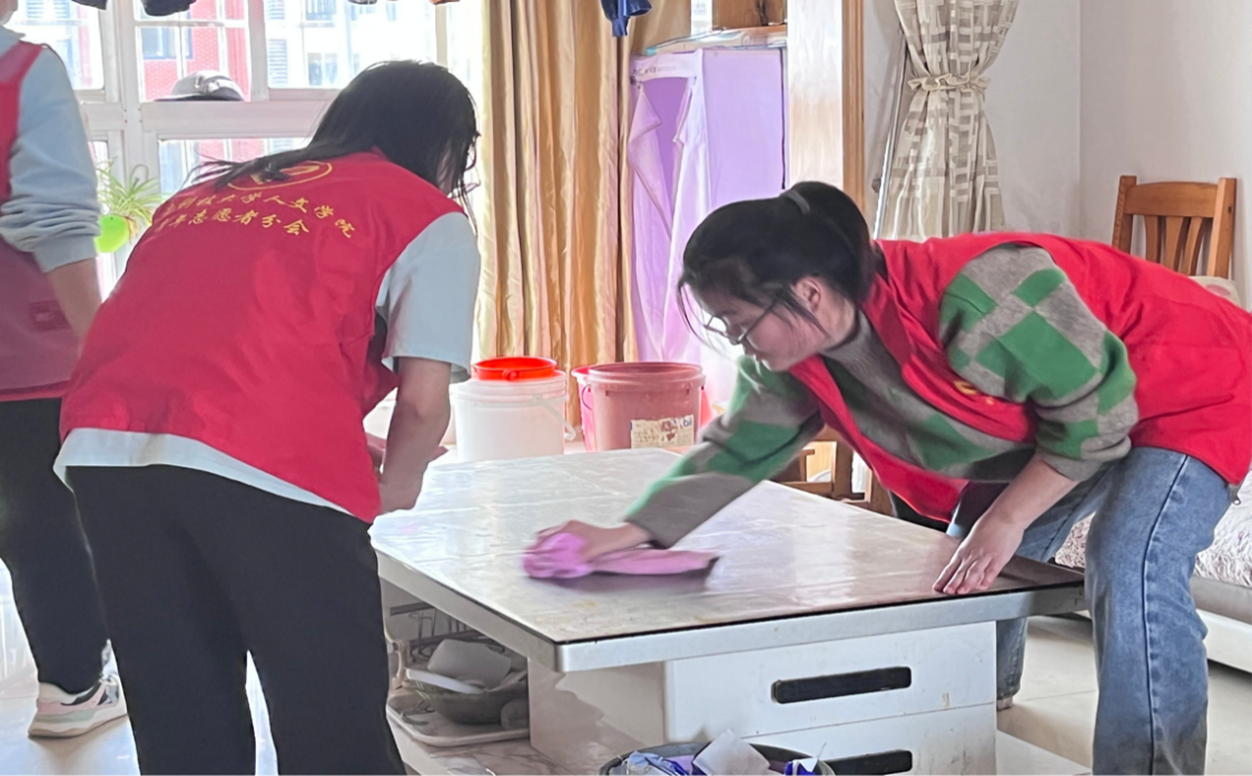 米兰平台学生志愿者帮助行动不便老人打扫卫生
