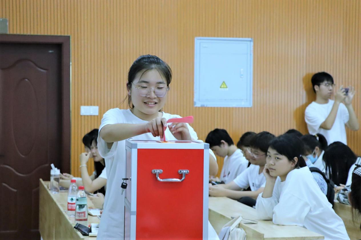候选人竞选演讲结束后,全体代表投票选取第二十一届主席团成员。现场监票人、计票人、唱票人对投票数量进行统计,罗振军宣布各候选人所得票数,老师们和候选人以及第二十届主席团成员合影留念,至此第二十一届团员暨学生代表大会顺利落幕。