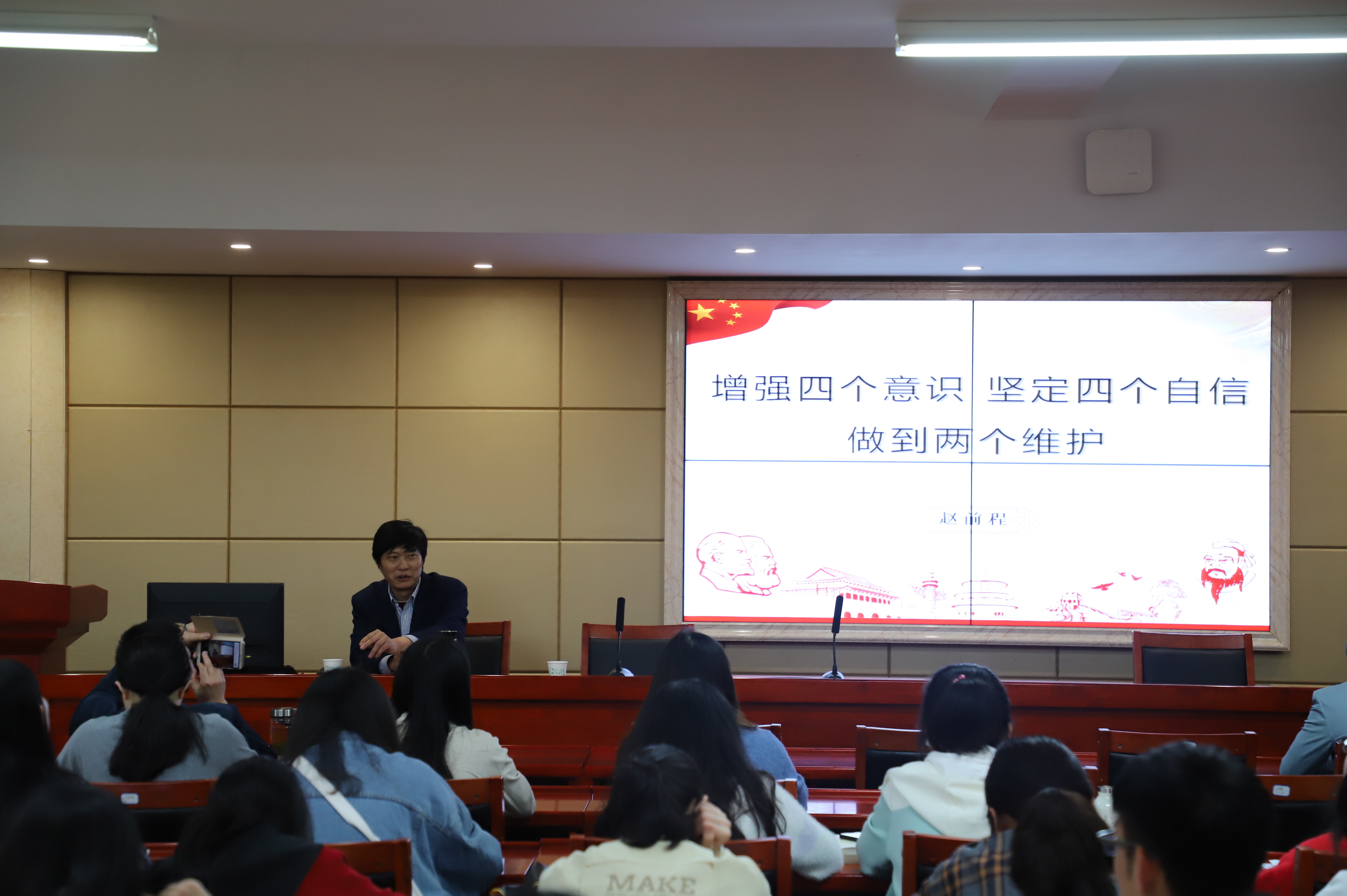 应米兰平台党委邀请,校党委委员、统战部长赵前程教授于4月16日下午在立言楼4-1报告厅为我院教工第五支部的党员老师和学生入党积极分子讲了一堂主题为“增强四个意识、坚定四个自信、做到两个维护”的精彩党课。