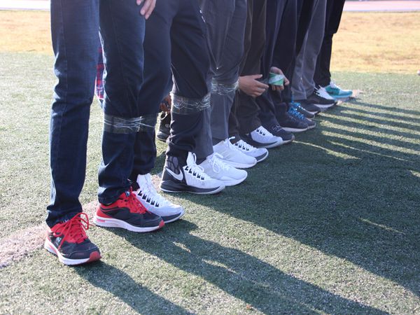 老师们的身影在比赛开始前就出现在田径场上,他们都身着运动服,脸上洋溢着快乐的笑容,在相互攀谈过后,摩拳擦掌,火热地进行准备活动。