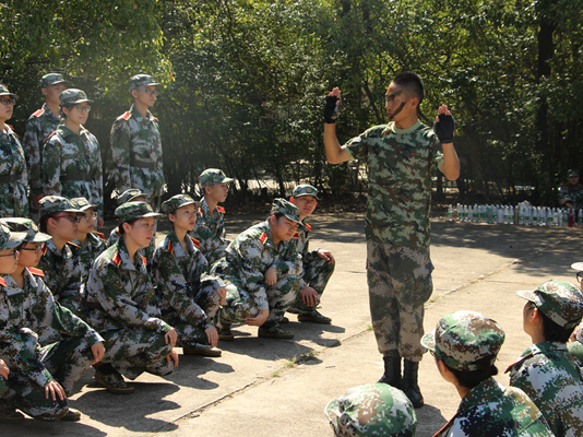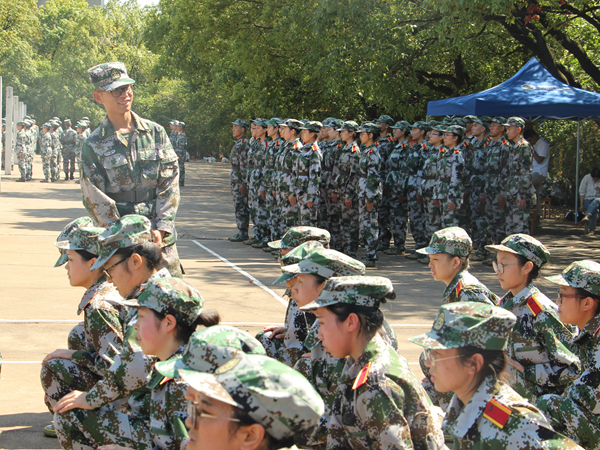 上午八点,我院2018级新生八个排的“新兵”个个身穿迷彩军装,在北校田径场集合,参加2018级新生军训动员大会,印有“米兰平台”的大旗飘扬在我院新生队列的最前方。动员大会上,我院新生认真听取学习了副校长的报告、教官代表的发言,欣赏了教官们带来的精彩表演。会后,全体新生由各排教官带领,前往位于训练场地—北校旧篮球场,开始正式训练。“拇指尖贴于食指第二关节,中指贴于裤缝……”教官从最基础的军姿动作要领开始亲自示范,在一声声刚劲有力口号下,新生们一丝不苟的完成立正、稍息、跨立、坐下、起立等训练任务。