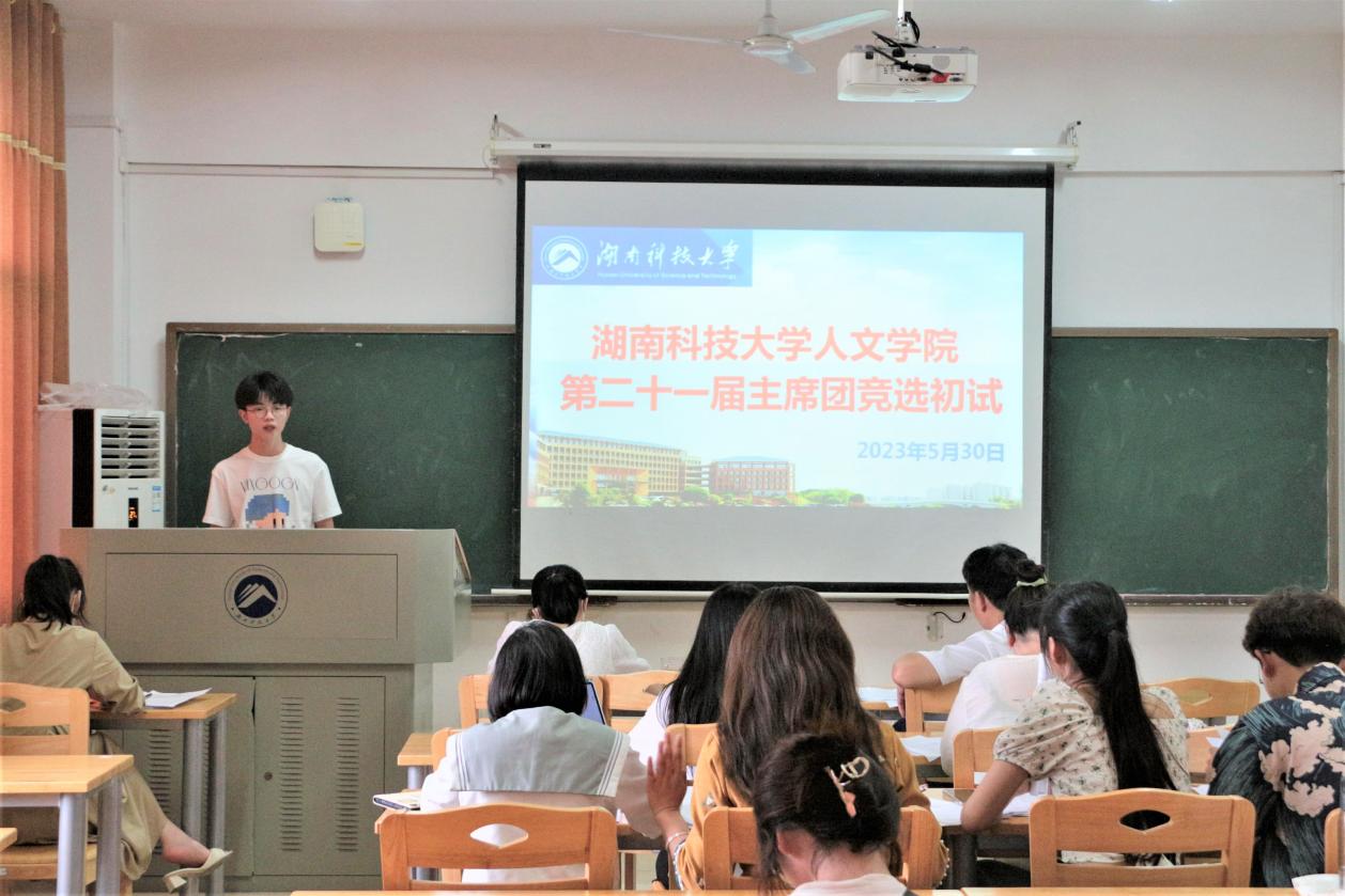 为完善学生工作干部队伍建设,我院于5月30日下午在立言楼B417室举行第二十一届主席团竞选初试。我院党委副书记罗振军、学工办主任李涛、团委书记曾思妍、辅导员赵华及第20届团委学生会主席团成员担任本次初试评委。