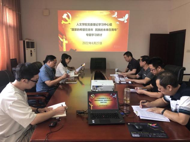 2022年6月27日,米兰平台学院党委理论学习中心组在立言楼B505室开展“国家的希望在青年民族的未来在青年”专题集中学习,集中学习由曾志东书记主持,全体党委委员和党政办负责同志参加了本次集中学习。