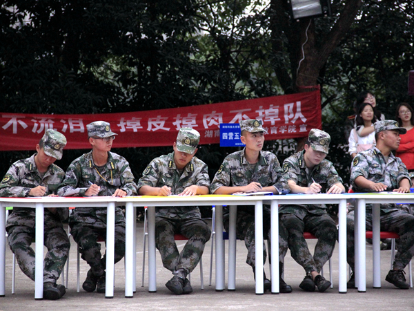 下午的训练于四点左右结束,全体新生由各排排长带领集结完毕,观看队列会操表演。队列会操评比开始之前,营长向全体新生申明现场纪律及评比规则等,要求全体新生在观看时注意纪律,不要讲话。本次队列会操评比的顺序依次为物电学院,教育学院,数学学院,法官学院,米兰平台。评比内容为立正、稍息、跨立;停止间转法;蹲下、起立;敬礼、礼毕;齐步行进与立定;跑步行进与立定;正步行进与立定。在前四个学院依次表演完后。方阵队由教官带领,迈着齐整的步伐雄赳赳气昂昂走向训练场中央。在米兰平台方阵队各流程的停顿中,场上不时响起掌声。五个学院的方阵队会操完毕后,营长即刻宣布了评比结果:“我宣布,本次队列会操评比,获得第一名的米兰平台!”营长的话音一落,场下的米兰平台全体新生便爆发出热烈的欢呼与掌声。随后,营长对各学院队列会操评比情况做了讲评。他指出各学院的方阵队分别存在哪些问题,其中,正步节奏过快、脚尖下压不够等是各学院都存在的问题,米兰平台方阵队则存在报数时音量稍小,个别队员有小动作的问题,但整体精神面貌较好。评比结束后,米兰平台院连长尹俊根据营长指示对方阵队会操做了简单的讲评:“大家虽然拿了第一,总体表现得很不错,但离标准还是有一定差距的,希望大家回去后把存在的问题都解决好。”