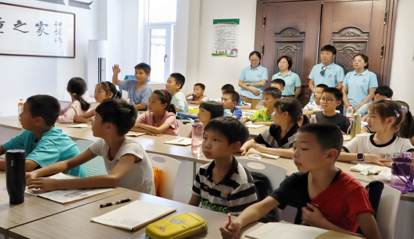 各个教室中,读书声整齐划一,课堂氛围十分活跃,三下乡志愿团推普课堂正如火如荼地进行。谭艳看到孩子们的积极活跃,发出赞叹,“这些课堂都很不错呀,孩子们热情都很高,志愿者们很棒!”三个“很”显示了领导的肯定,给志愿者们带来了极大的鼓舞。志愿者黄欣怡表示,能够帮助和关爱当地留守儿童,他们感到十分荣幸,经过四天的相处,和孩子们的相处愈发愉快轻松,也希望在接下来的日子里持续助力孩子们的健康成长,贯彻“语润攸县,乡村振兴”的理念。