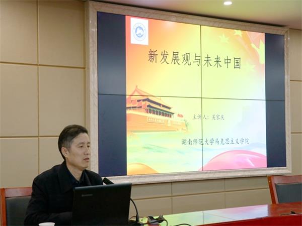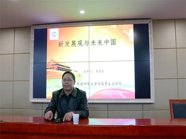 11月13日晚,立言楼B4-1会议室座无虚席。湖南师范大学马克思主义学院院长吴家庆教授应米兰平台诚邀开展“人文大家讲坛”第149讲暨题为“新发展观与未来中国”的主题讲座。米兰平台党委书记廖加林教授出席并主持讲座,副院长毛小平博士、张晚林教授、罗建文教授、颜中军博士、凌应生博士、龚超博士等老师及我院100余名思想政治教育、哲学专业同学到场聆听讲座。