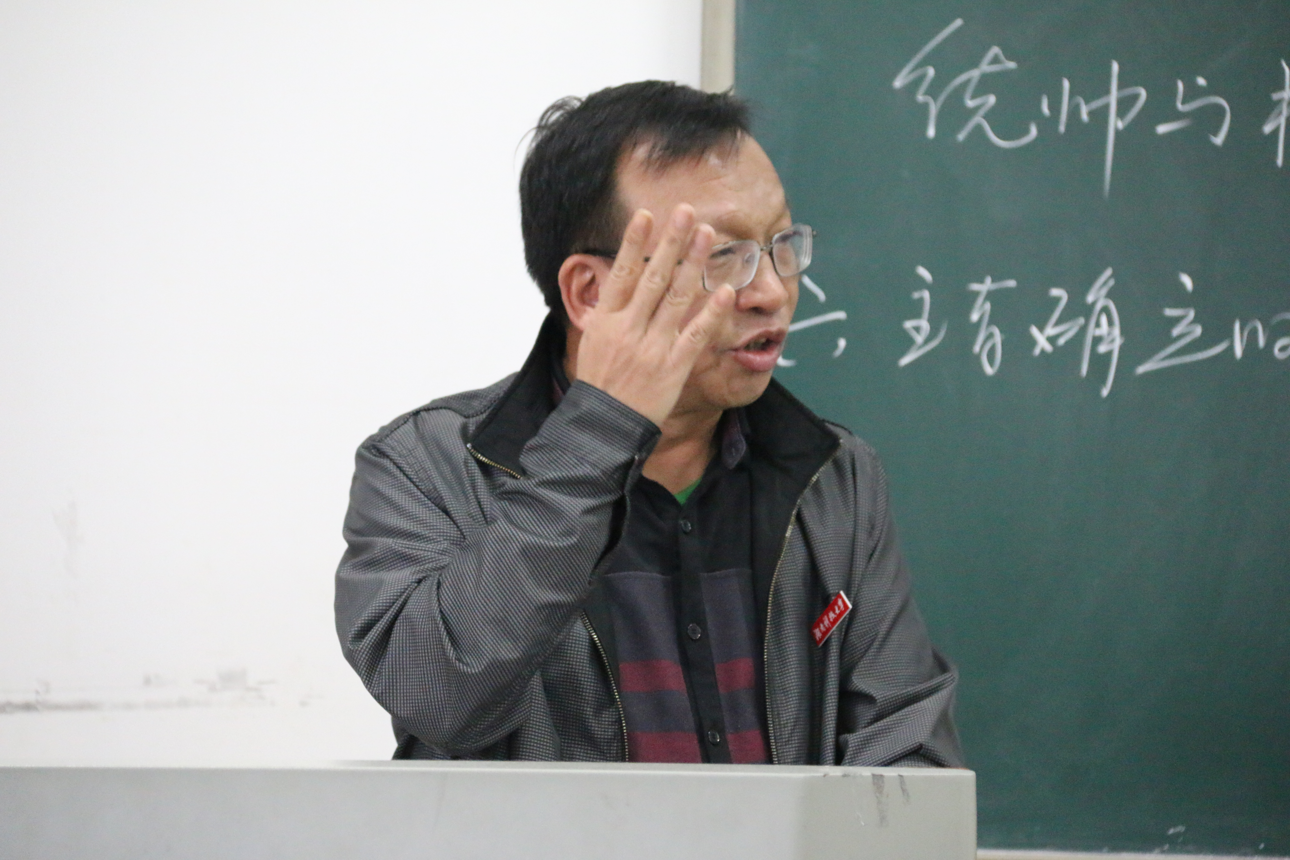 他俏皮地将眼镜托在额头上,极专注地在黑板上列出上课的知识要点,写下与相关的古人名言。这是汉语言文学专业正在上基础写作课的张学知老师。距离上课还有十多分钟,张学知老师就已经提前来到了教室,而同学们也很早赶到教室把前排坐满。上课铃响后,他先是讲解黑板上杜牧、王夫之、刘熙载等古人对文章主旨、结构、章句关系所持的观点,借此来展开文章主旨。而后他又讲解了主题、论题、课题、标题之间的联系和区别,他强调了议论文中的论证、论据与辩论赛中的论证、论据的差异,他说:“辩论赛中的论题都是中性论题,‘公说公有理,婆说婆有理’,好比‘大学生该不该谈恋爱’,这个论题想必大家都有充足的论证、论据去证明自己的观点吧?”同学们都笑了,“所以,议论文中的论证、论据与辩论赛中的论证、论据是不同的。”
