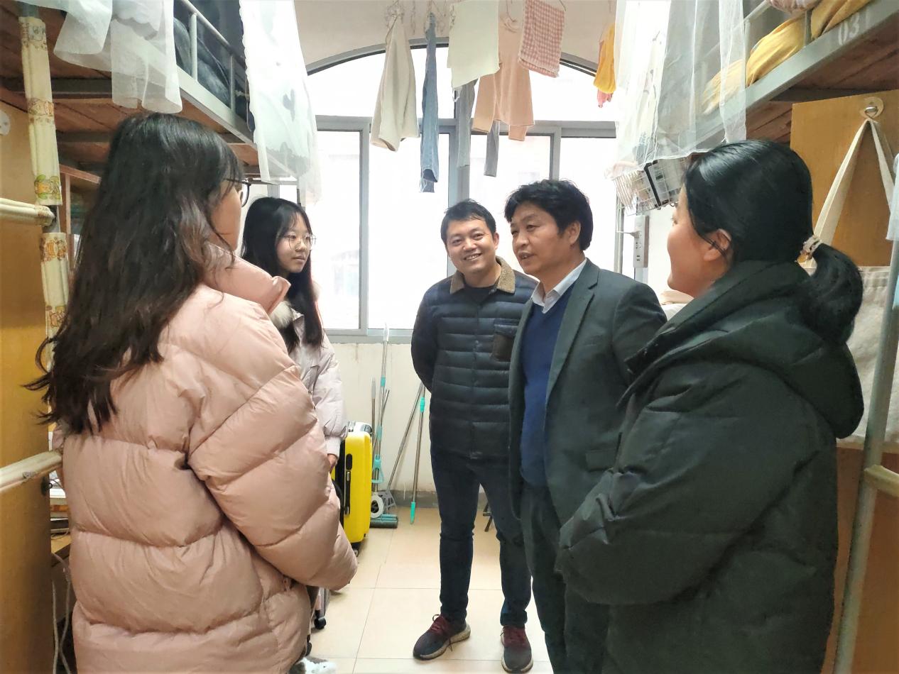 2月12日下午,为进一步了解学生的学习生活状态及宿舍卫生环境,我院党委书记曾志东带领学院全体领导及辅导员前往学生宿舍关心慰问,与同学们面对面交流。