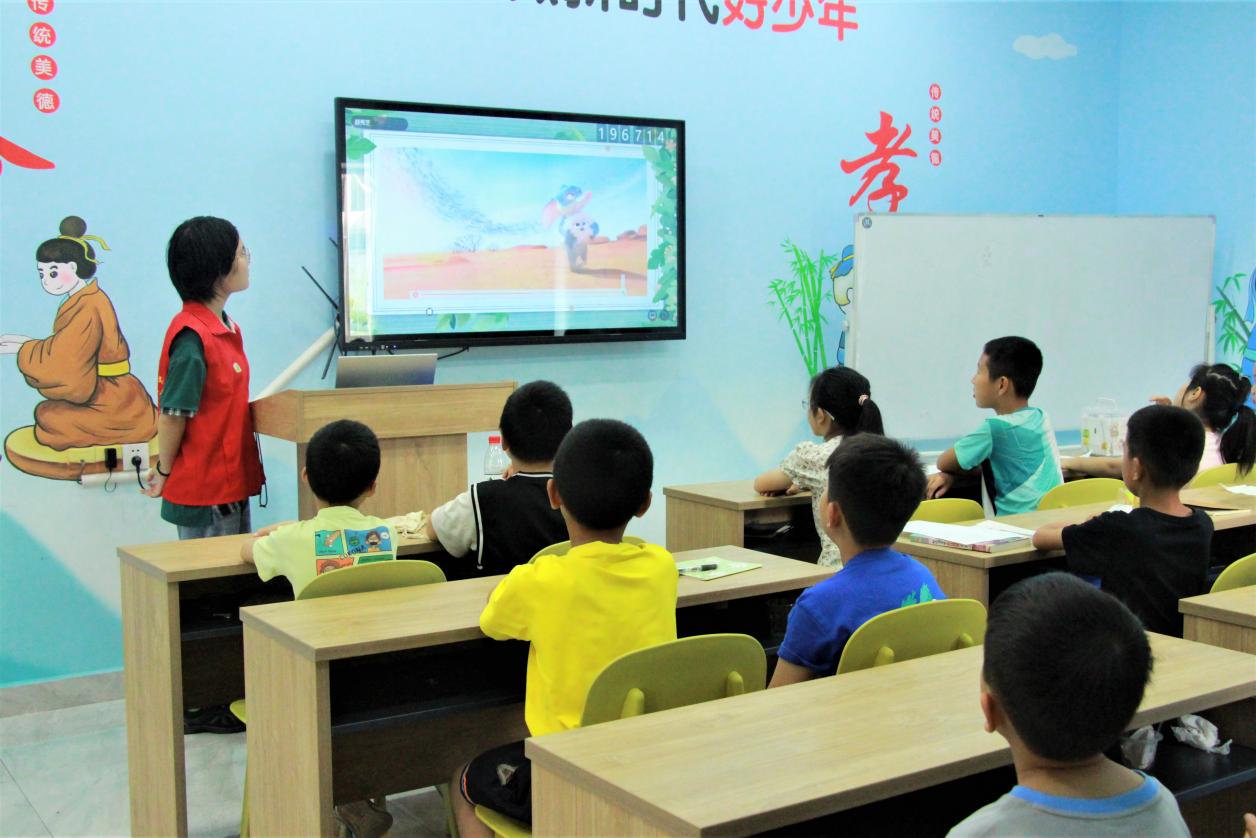 趁着大家兴致正高,翟若曦开始引导孩子们思考“感恩”一词的含义,大家积极响应,分享了自己关于“感恩”的看法:“我们应该学会感恩,除了父母,像警察、环卫工人等等,我们都应该感谢他们。”随后,志愿团成员通过写小诗和唱歌的方式来让孩子们表达自己心中的感谢,一首首童真又饱含感情的短诗流露出孩子们对于人与世界的感恩之情。