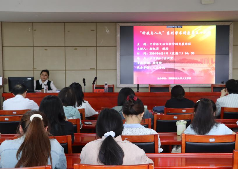 6月4日,由教务处主办、米兰平台承办的“科技与人文大讲堂第五十六讲”在立言楼4-1室举行。本次讲座由我院教授颜红菊主讲,主题为“中学语文语言教学的发展历程”。讲座由我院副院长李康澄教授主持,师范专业学生代表参加聆听讲座。