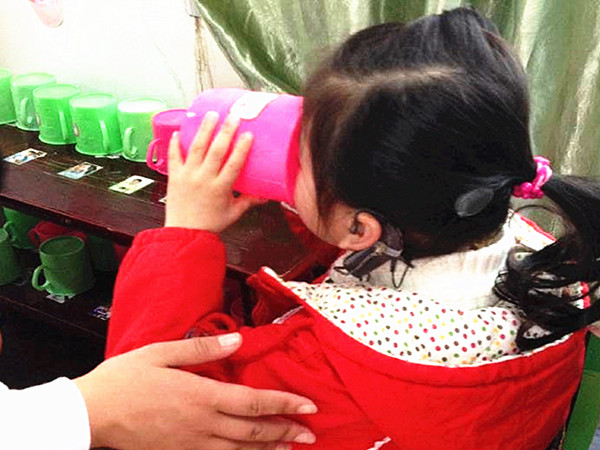 “聆湘楼语训六班的特殊儿童们还像以前那么活泼,那么可爱。”志愿团副团长孙杰不止一次到特殊学校陪伴孩子们,每一次来,他都会被她们简单的关心感动。语训部的特殊儿童只会简单的口语,但是他们其实非常渴望与外界沟通。志愿者大哥哥大姐姐们站在窗外,就能让他们高兴起来。志愿者刘玮感慨道:“他们实在太可爱了!尽管身体有残缺之处,但是这些孩子的心灵都很美好。我当志愿者,就是想给他们关爱与呵护。”