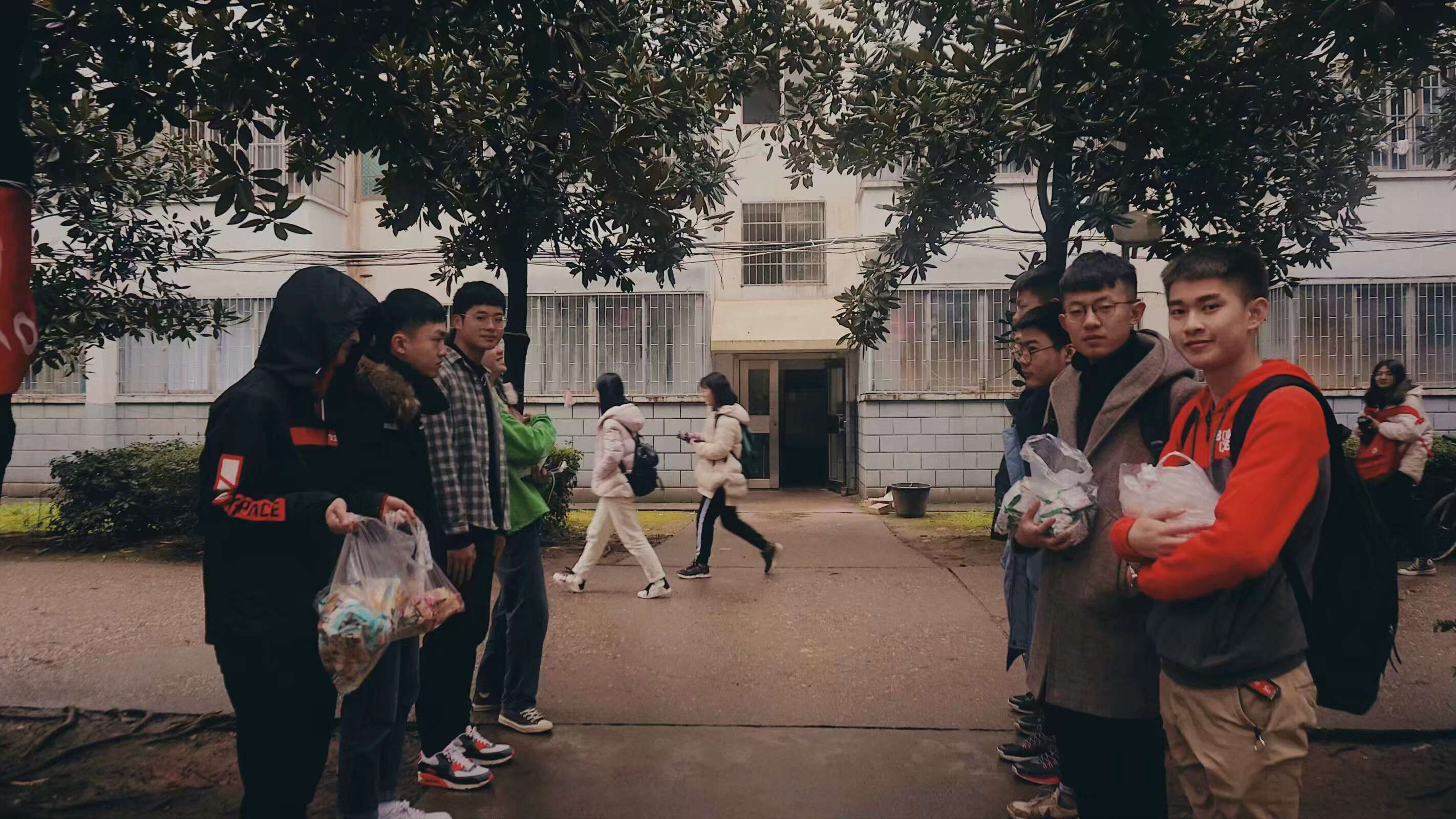 我院18级广告专业的男生早早就等在女生宿舍门口,天还有点黑蒙蒙的,但挂在树两旁的横幅却能让脑子立刻从混沌到清醒。“御江湖,千秋万代。论女神,广告不败。”男生们站在横幅前面成两排,为今天节日的主角精心准备了早餐,还细心的把牛奶也热好了,为这个还不算太温暖的初春添上几分明媚。