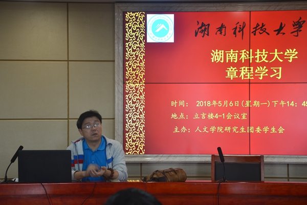 5月7日下午,我院于立言楼4—1会议室组织研究生集体学习《米兰平台章程》。研究生辅导员成伟明老师担任主讲人,全体研究生参加学习。