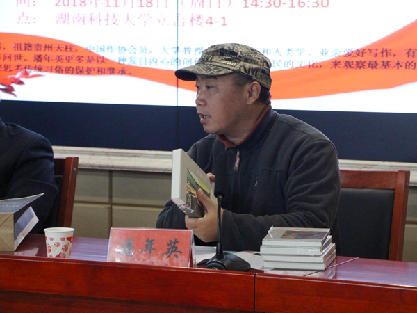 在刘奇玉院长简单介绍潘年英教授其及作品之后,刘德顺书记畅谈了对“文人”的理解,他认为“文人”是有创造力,有思想,围绕人而写文章的人,他们认识自然的伟大,自己的渺小,思考人类的文明。而在诸多文人中,对中国现代文明与少数民族村落的冲击一边思考,一边追问又一边回答的潘教授成为了一个“特别”的文人,一个值得我们学习与敬佩的文人。