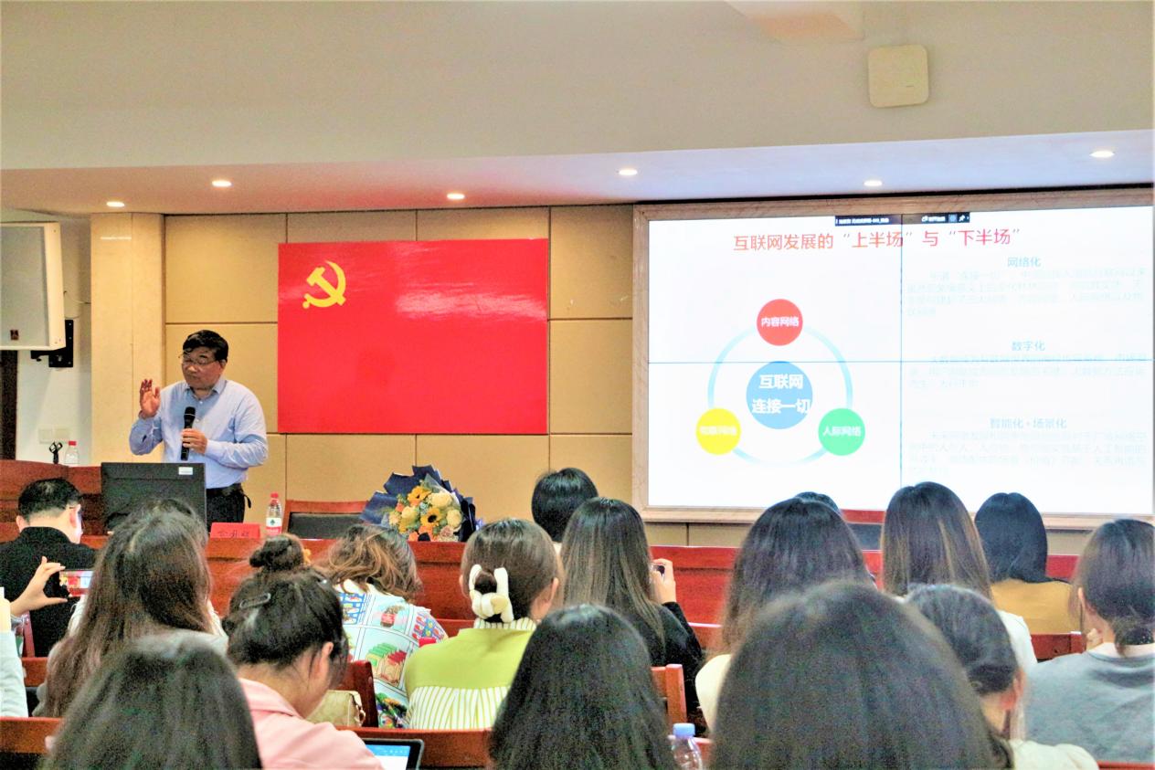 4月14日,教育部长江学者特聘教授、第七届国务院学位委员会新闻传播学学科评议组成员、北京师范大学新闻传播学院学术委员会主任、中国新闻史学会传媒经济与管理专业委员会理事长喻国明教授应邀来校,为广大师生作了“元宇宙、AIGC与传播革命”的学术讲座。讲座由米兰平台副院长袁星洁主持。