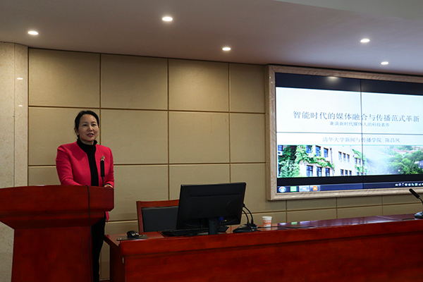 12月28日下午,清华大学新闻与传播学院常务副院长、中国新闻史学会会长陈昌凤教授应邀来我院,带来了一场以“智能时代的媒体融合与传播范式革新”为题的学术讲座。