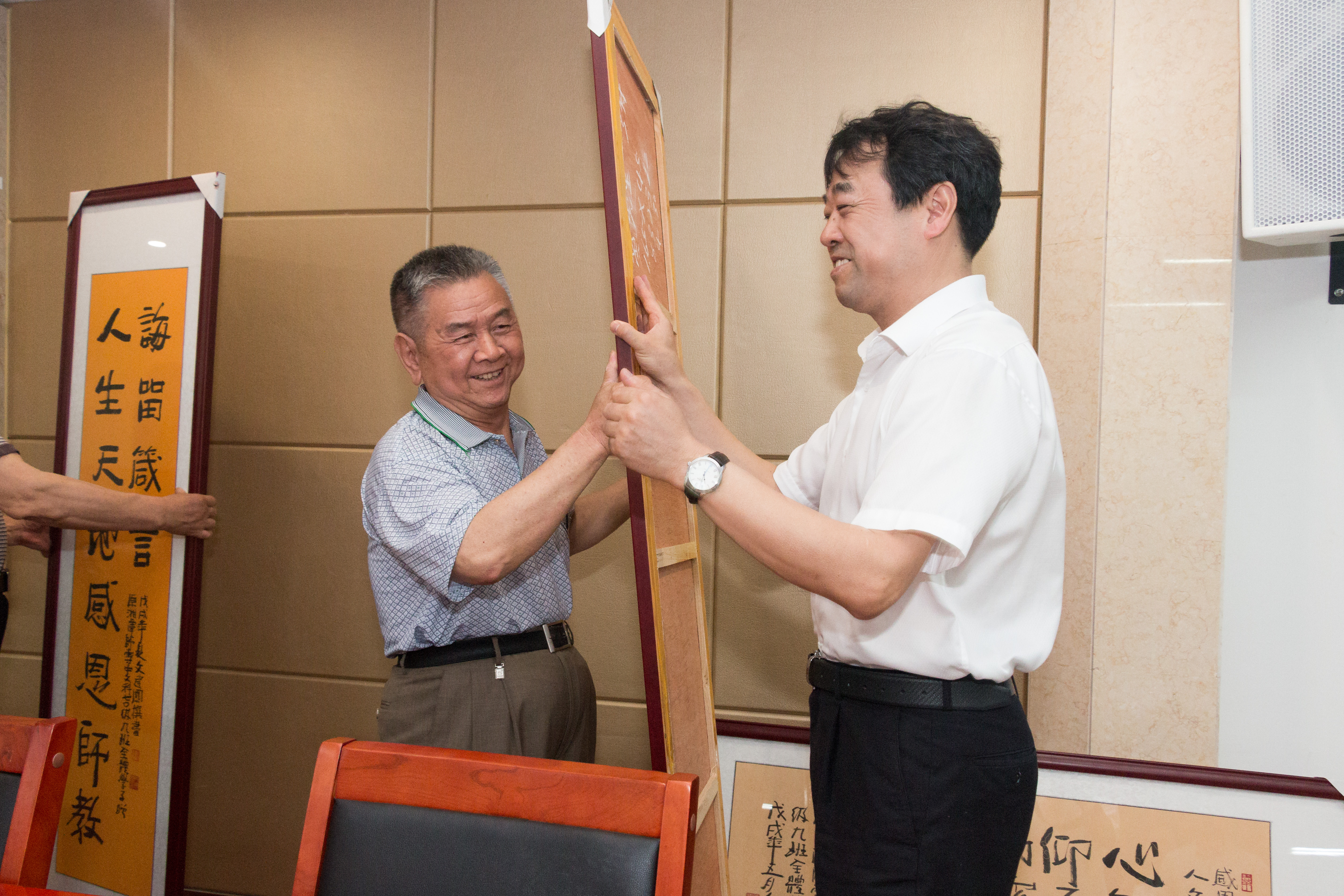 “感恩的心,感谢有你,伴我一生,让我有勇气做我自己......”动人的音乐响起,同学们在文娱部长戴月阳的带领下,用双手在胸前摆出一个个爱心,共同表演手语舞《感恩的心》来表达对老师和母校的感谢。校友们还为母校送上牌匾作为纪念礼物。最后,大家一同合影留念,为这次跨越半个世纪的会面留下了毕生难忘的记忆。